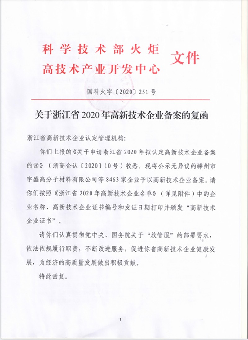 近(jìn)日(rì),科(kē)學技(jì)術(shù)部火(huǒ)炬高(gāo)技(jì)術(shù≠)産業(yè)開(kāi)發中心發文(wén),認定浙江慧創工貿有限公司為(wèi)“高(gāo)新技(jì)術(shù)企業(yè)”。